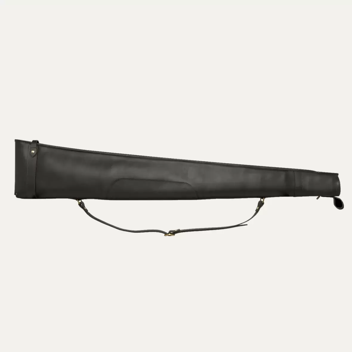 Foderal til rifler i ægte læder med lynlås i siden og klaplukning.
