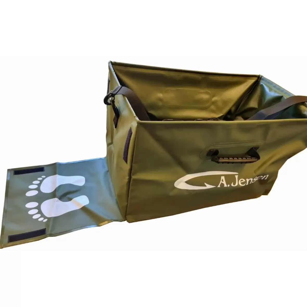 Den er fremstillet i vandtæt materiale og udstyret med aftagelig skulderrem og bærehåndtag, så den er nem at transportere. Indvendigt er der god plads til både waders, støvler og andet vådt udstyr.