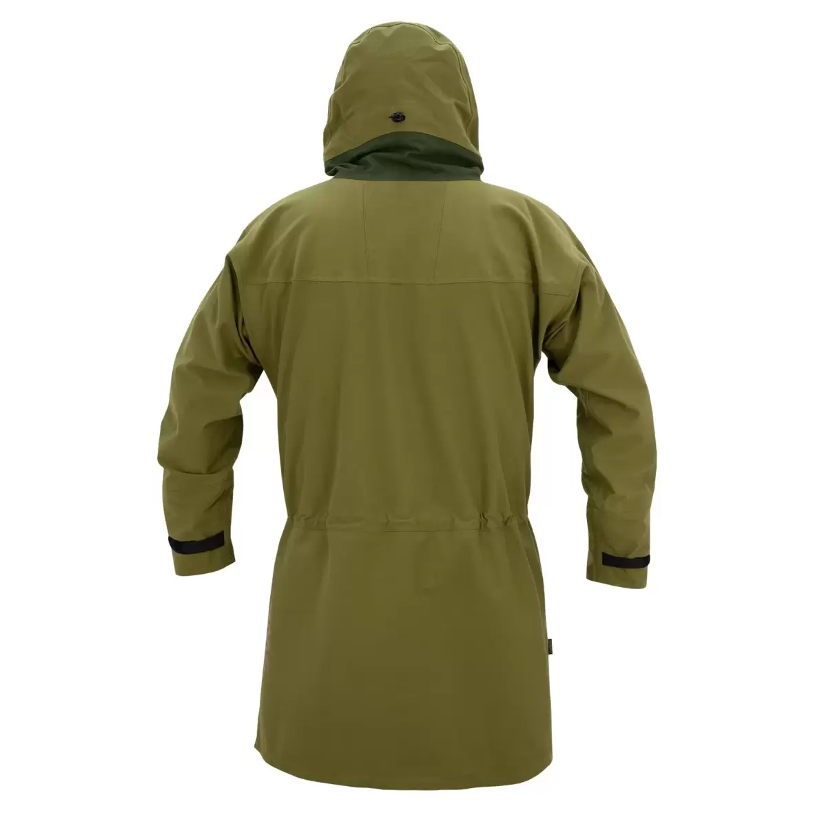Tahr XP Anorak er designet til jægere, der ved at regn betyder lydløs bevægelse – men også kræver pålidelig beskyttelse mod elementerne. Denne anorak er både vandtæt og vindtæt, og den er let nok til lange dage i terrænet. Swazi's Generation 4 Whisper-stof giver dig en stor fordel: det er lydløst og fleksibelt, i modsætning til gammeldags regntøj der rasler som cellofan. Hætten kan formes, så du holder regnen væk fra ansigtet uden at miste dit perifere udsyn.Stoffet har stræk, så det giver efter når du ikke kan – f.eks. . når du sidder fast i krat eller skal vride dig til et vanskeligt skud. Den korte ydre "fuzz" hjælper med at afvise vand og tørre hurtigere.Med dobbeltmanchetter og vandafvisende lynlåse er Tahr XP Anorak skabt til at klare højdemeter i silende regn.