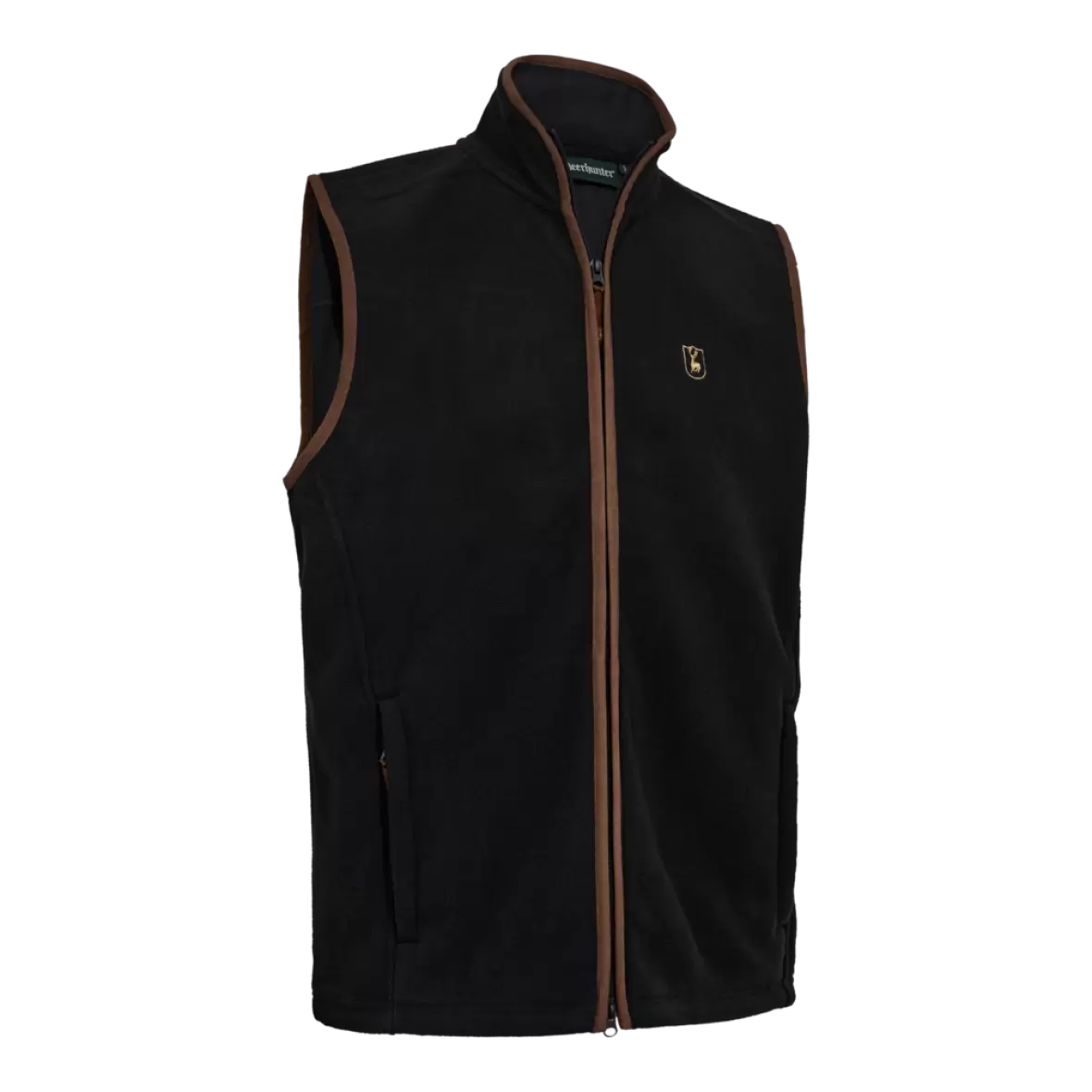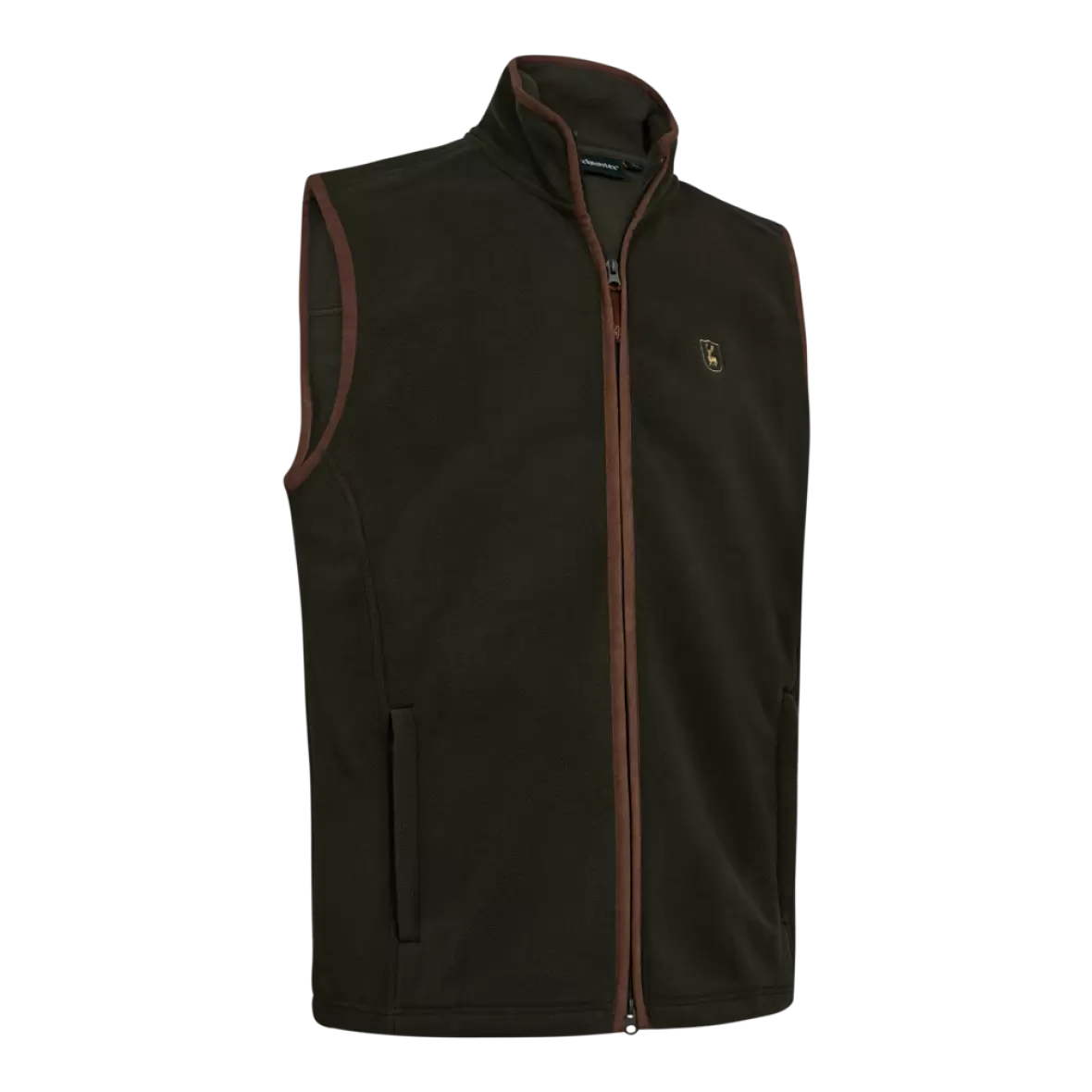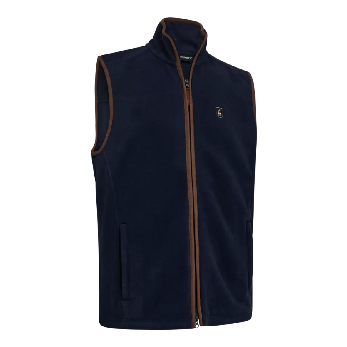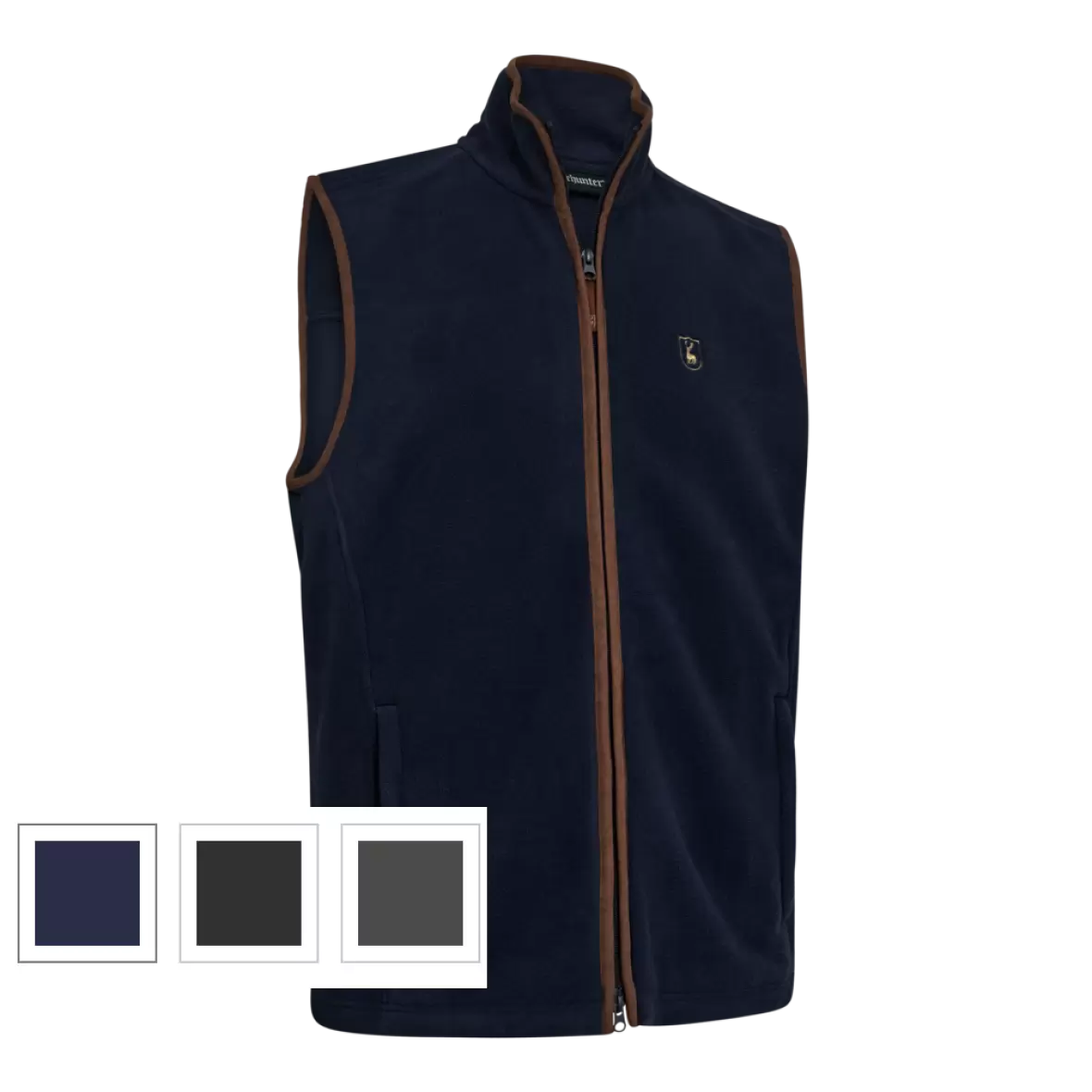 Cumbria fleecevesten forener klassisk landstil med lydløs funktionalitet, og er ideel over en skjorte på kølige dage. Den er lavet af genanvendt polyesterfleece og giver blød varme med en anti-pilling behandling, der holder materialet pænt over tid. Imiteret ruskind på skuldre og krave tilføjer et elegant præg, og det broderede logo på brystet giver et traditionelt udtryk. Vesten har to forlommer med lynlås til sikker opbevaring, og en justerbar snøre forneden gør det nemt at tilpasse pasformen. Blød, lydløs og tidløs – perfekt til både jagt, hverdagsbrug og afslappede begivenheder.