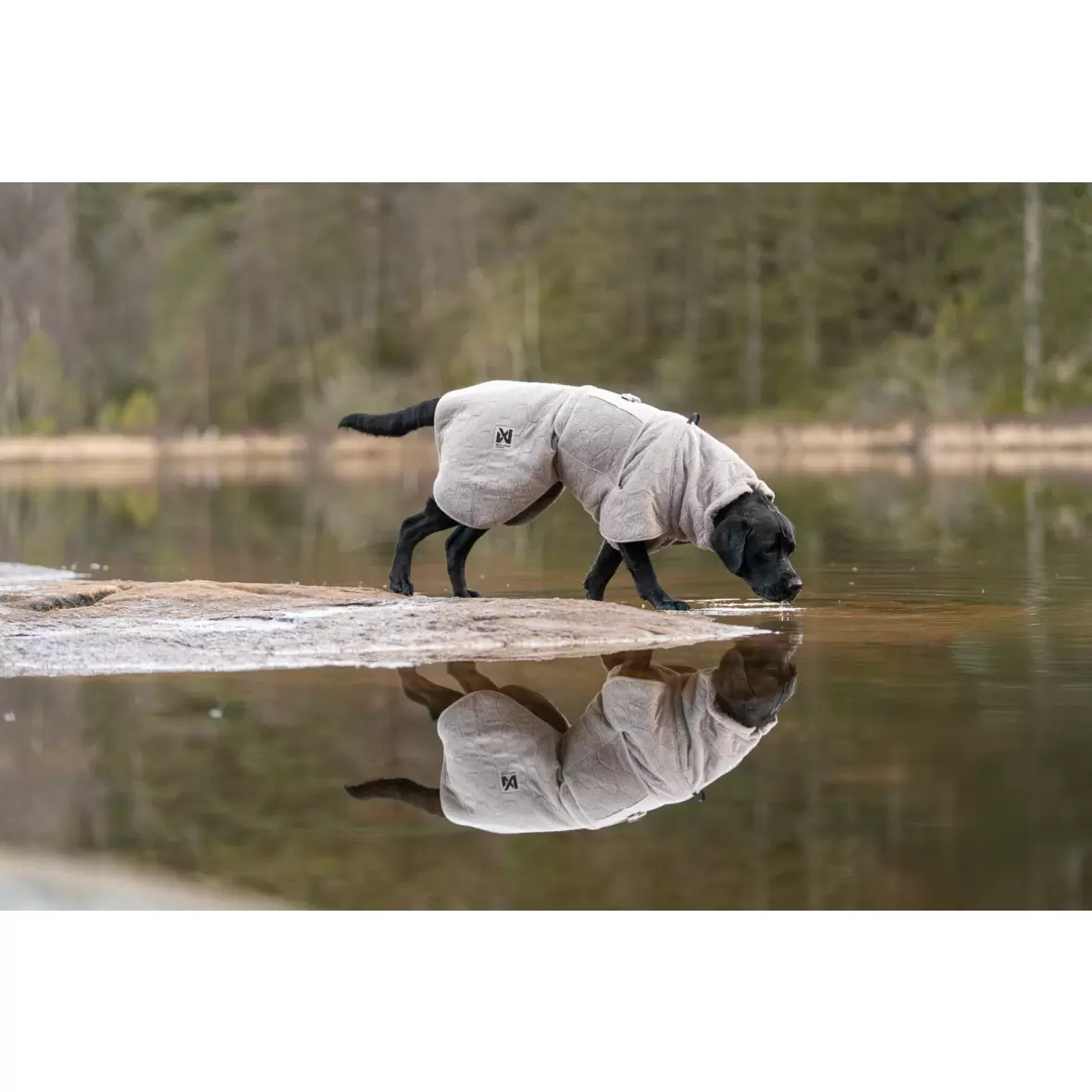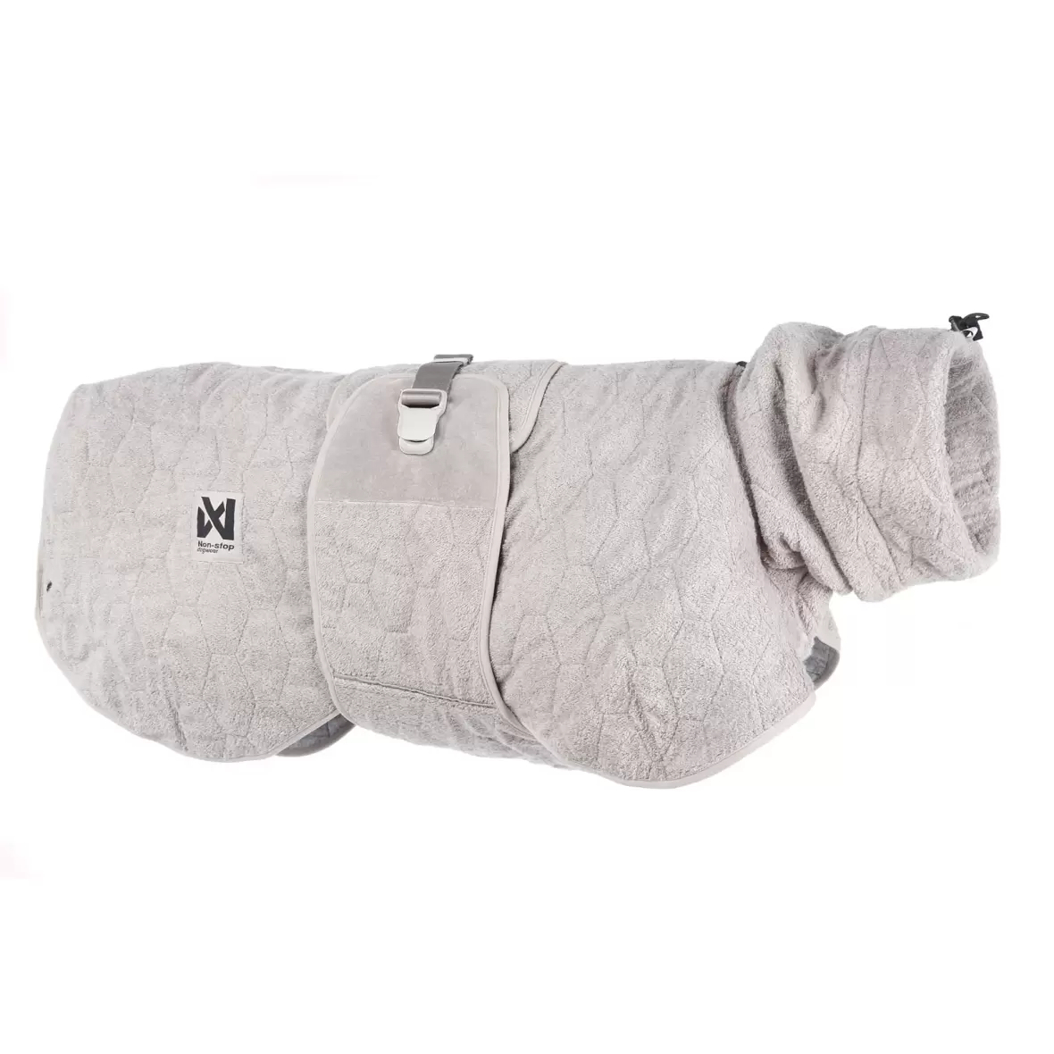 Non-Stop Dogwear Drying coat er designet som en badekåbe og hjælper med at tørre din hund hurtigt og effektivt – op til dobbelt så hurtigt som almindelige håndklæder. Efter en svømmetur i søen, en gåtur i regnvejr eller en våd træningssession kan din aktive hund forblive varm og komfortabel – både i bilen og derhjemme.