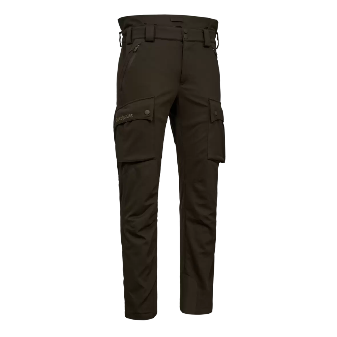 Muflon Pro Light bukserne er udviklet til aktive jagter under mildere forhold, hvor fleksibilitet, åndbarhed og slidstyrke er afgørende. De er fremstillet af genanvendt polyester med Deer-X Dura forstærkninger og har en DEER-TEX® membran, der beskytter mod vand og vind og samtidig lader kroppen ånde. Meshfor, ventilationslynlåse og formsyede knæ sikrer høj komfort og bevægelsesfrihed. Gennemtænkte detaljer som vandtætte lommer, forstærkede ben nederst og en støvlekrog giver en sikker pasform. Kombinér med Muflon Pro Light jakken for et let og funktionelt jagtsæt.