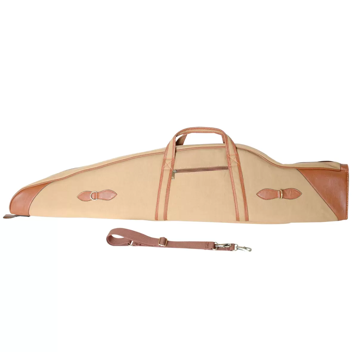 Foderalet har en stærk bærerem og en aftagelig skulderrem, der gør det nemt at bære selv de tunge geværer.